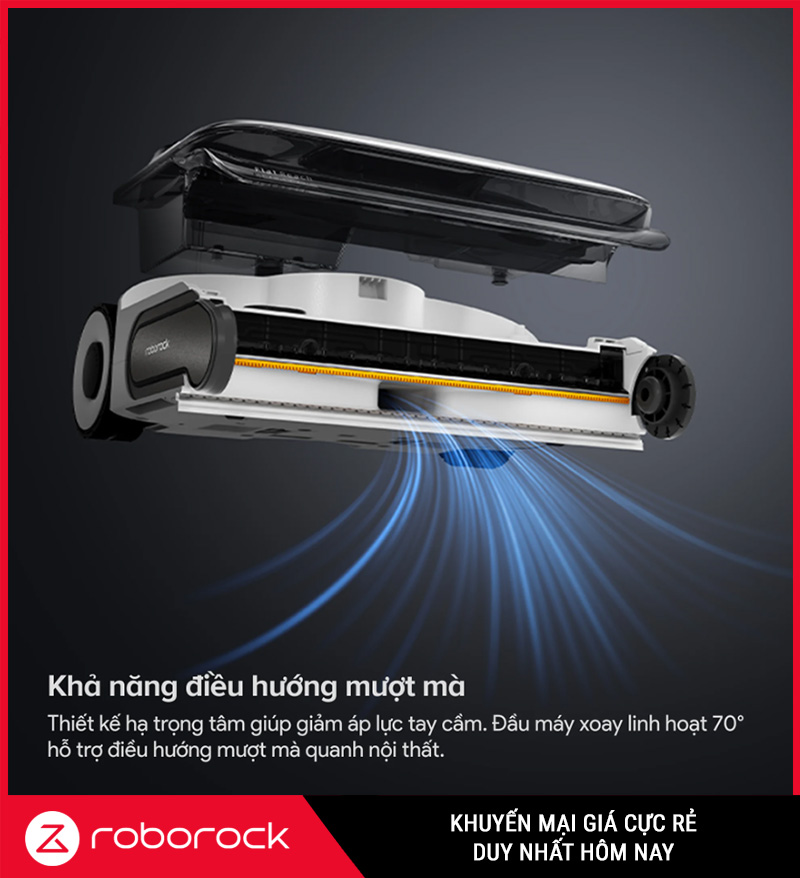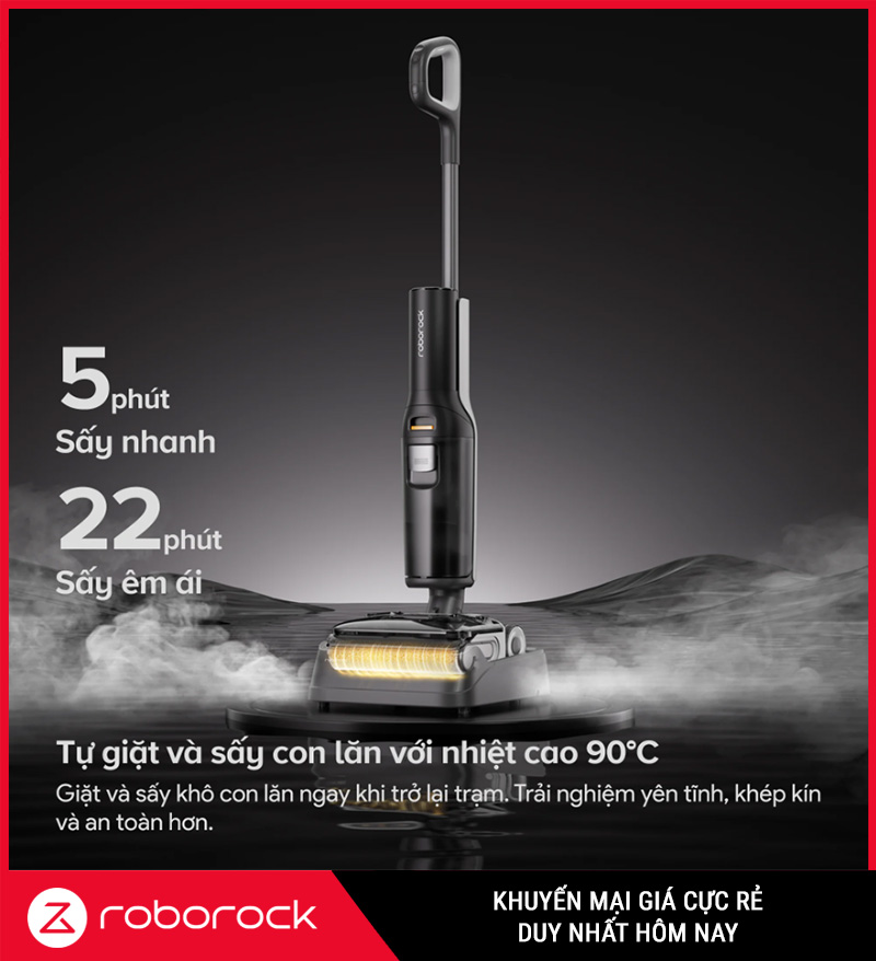 Kết hợp cùng công nghệ giặt sấy con lăn ở nhiệt độ cao, hệ thống này mang lại trải nghiệm chăm sóc thiết bị gần như tự động, tiện lợi hơn rất nhiều so với các dòng máy lau sàn truyền thống.