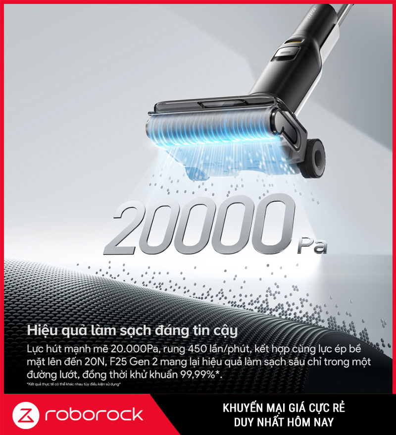 Kết hợp với công suất 200W, Roborock F25 Gen 2 không chỉ hút sạch nhanh mà còn hỗ trợ lau sàn hiệu quả hơn, giúp bề mặt sàn sạch sâu chỉ sau một lần di chuyển.