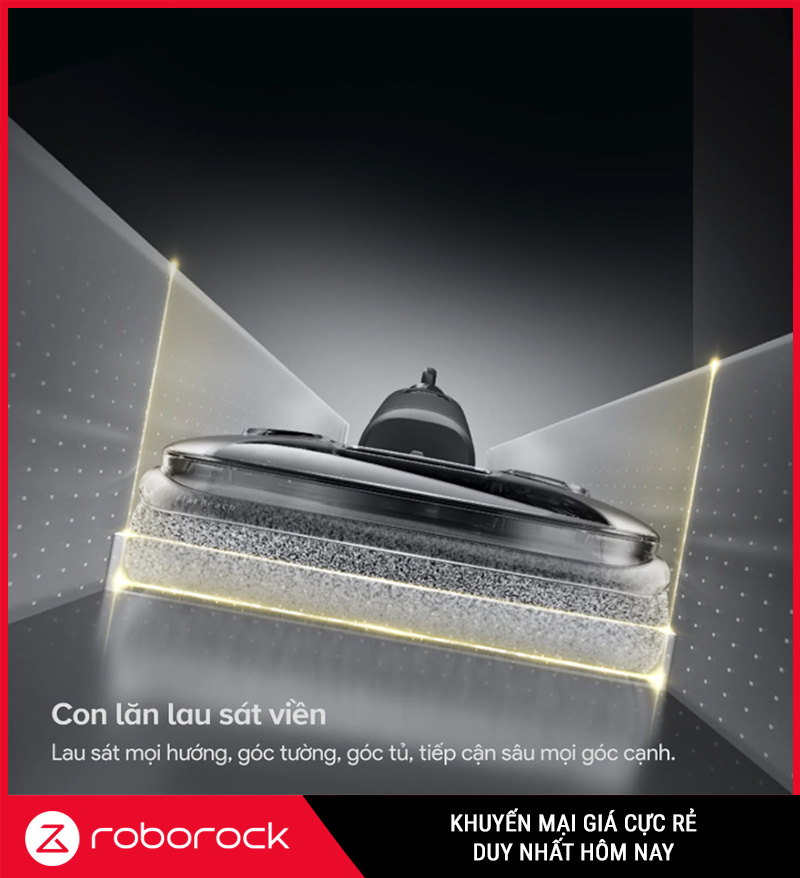 Một ưu điểm đáng giá khác của Roborock F25 Gen 2 là con lăn lau sát viền, giúp tăng hiệu quả làm sạch ở mép tường và các khu vực cạnh chân bàn, chân tủ.