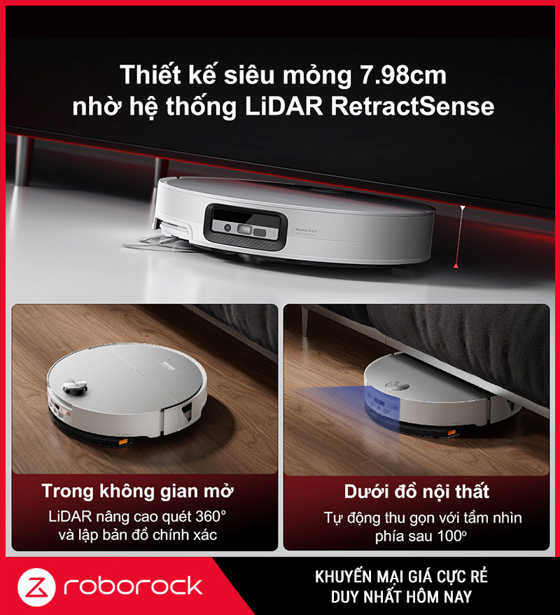 Saros 20 Sonic có thân máy siêu mỏng 7.98cm, kết hợp RetractSense giúp robot luồn lách tốt hơn: