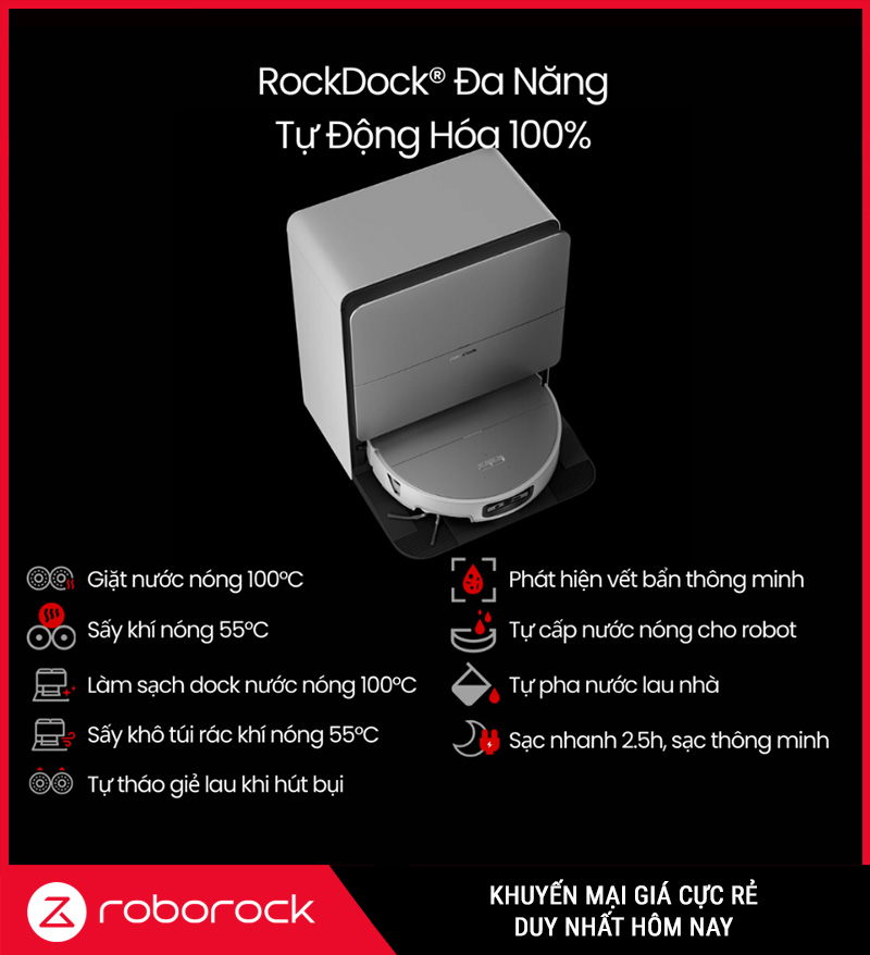 | Dock | Tự đổ rác | Tối đa khoảng 65 ngày (tùy mức dùng) |