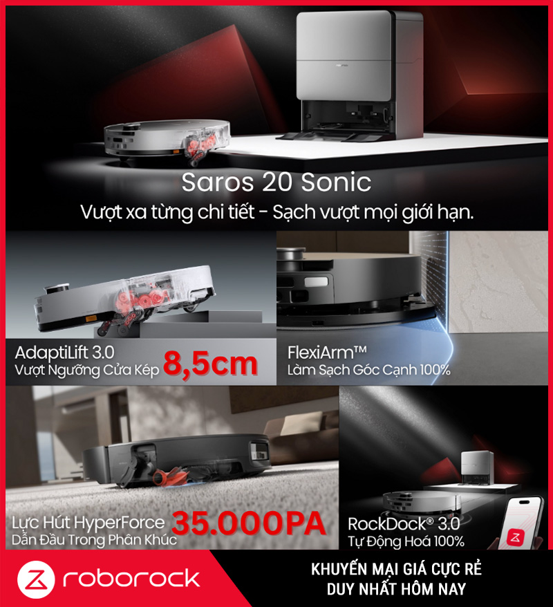 Roborock Saros 20 Sonic (Bản Quốc Tế) là lựa chọn đáng đầu tư nếu bạn muốn một robot dọn sạch sâu – vận hành thông minh – rảnh tay thật sự, đặc biệt phù hợp nhà có thú cưng: