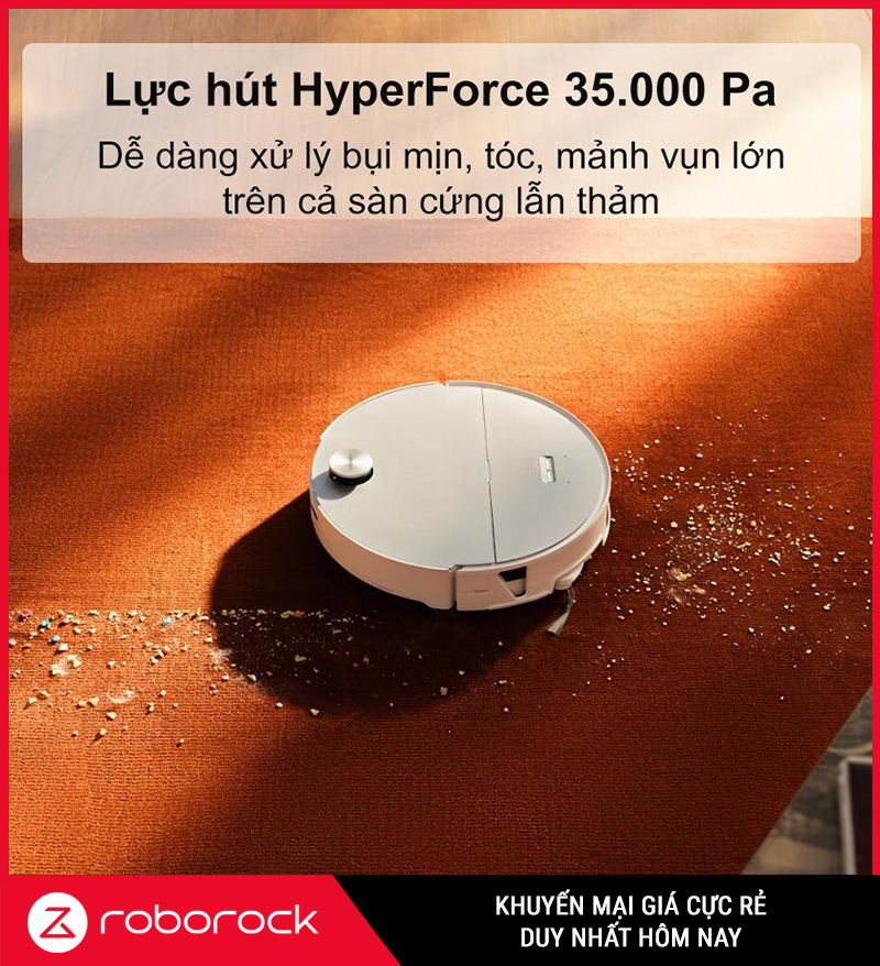 Roborock Saros 20 Sonic sở hữu lực hút HyperForce lên tới 35.000Pa, cực phù hợp với nhà cần dọn “sạch thật” mỗi ngày: